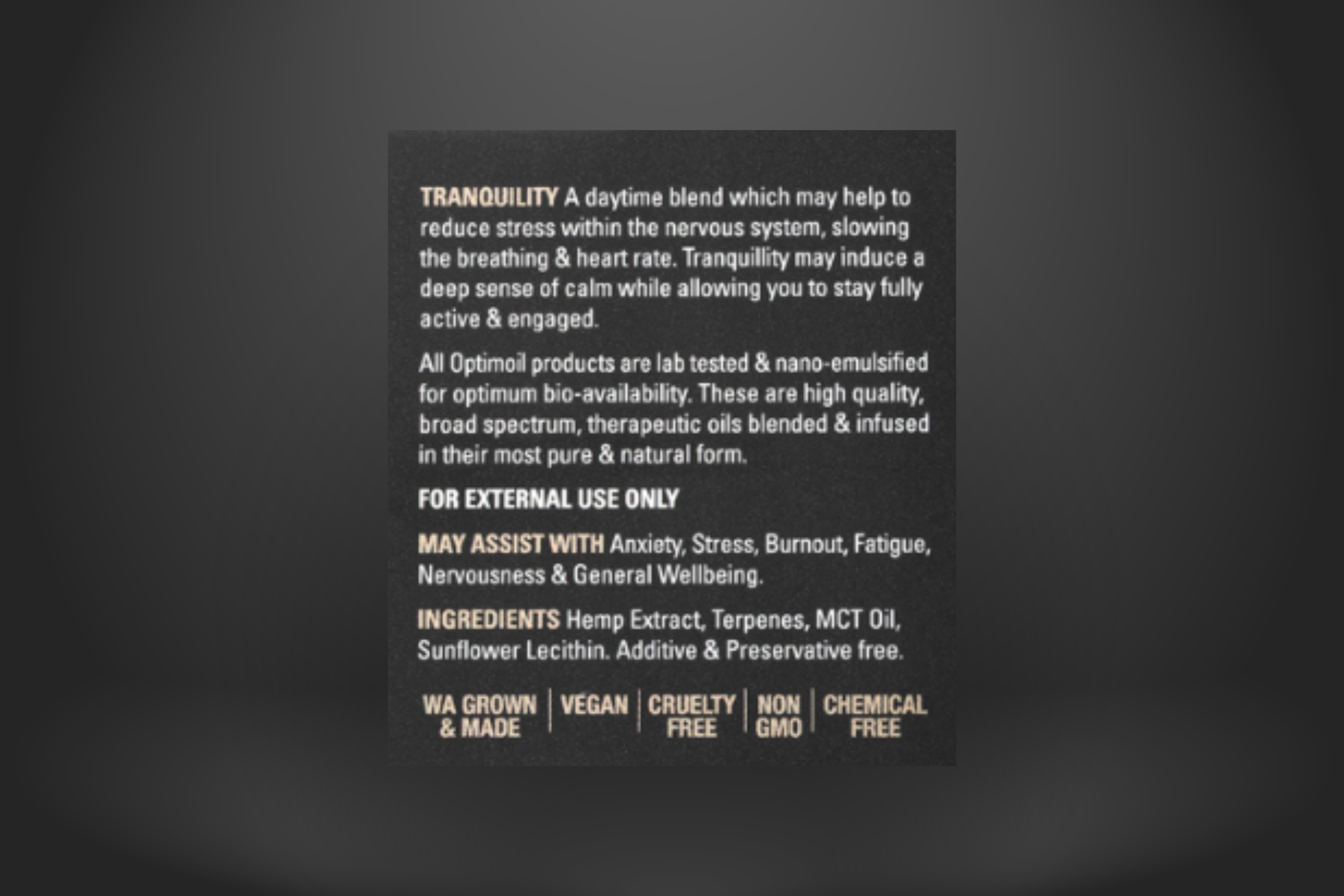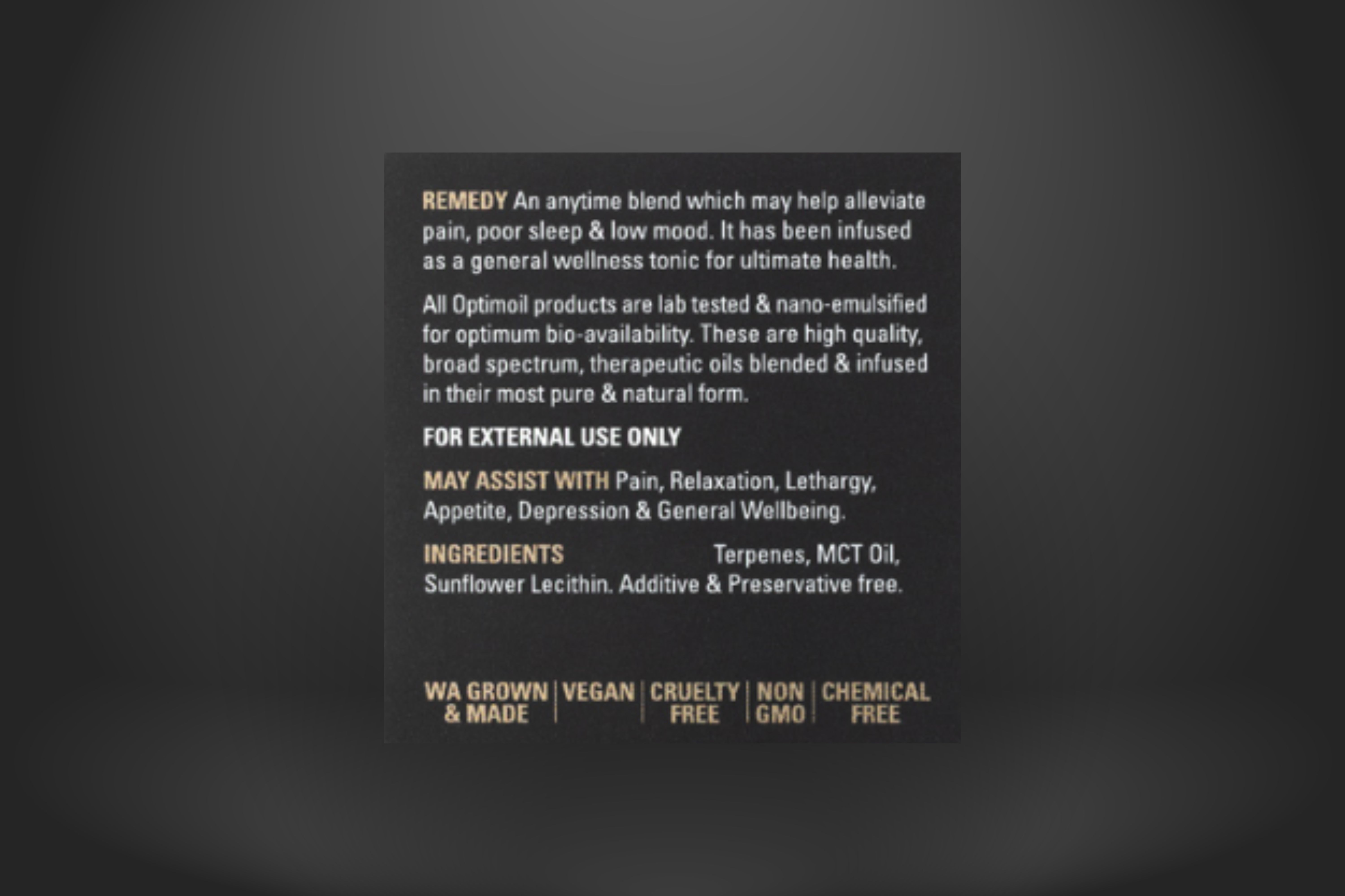 All Optimoil products are nano-emulsified for optimum bio-availability.